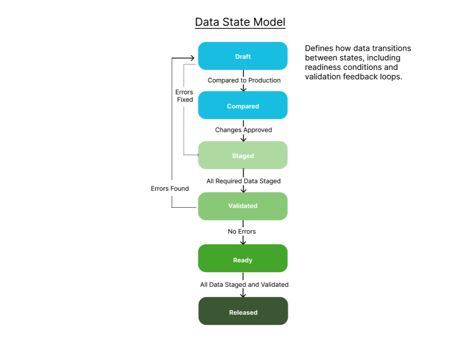 Intervention: Defined and implemented a shared data lifecycle model that governed how data moved across editing, staging, validation, and release - establishing system-level ownership, visibility, and readiness signals.